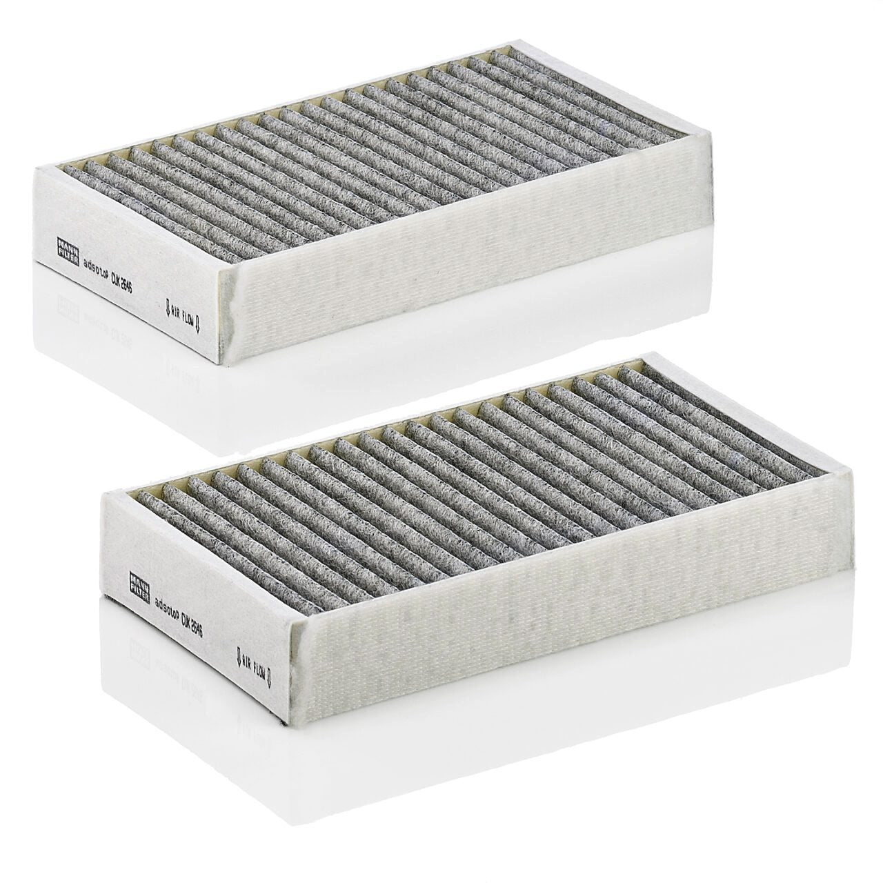 High-quality MANN-FILTER cabin filters with active carbon - nearly 100% protection from particles like pollen, diesel soot & tyre abrasion / Additional protection from harmful gases & unpleasant odour. The trated highly-effective activated carbon gives protection against harmful gases such as ozone, nitrogen oxide or sulphur dioxide and eliminates unpleasant odours during the entire service interval.