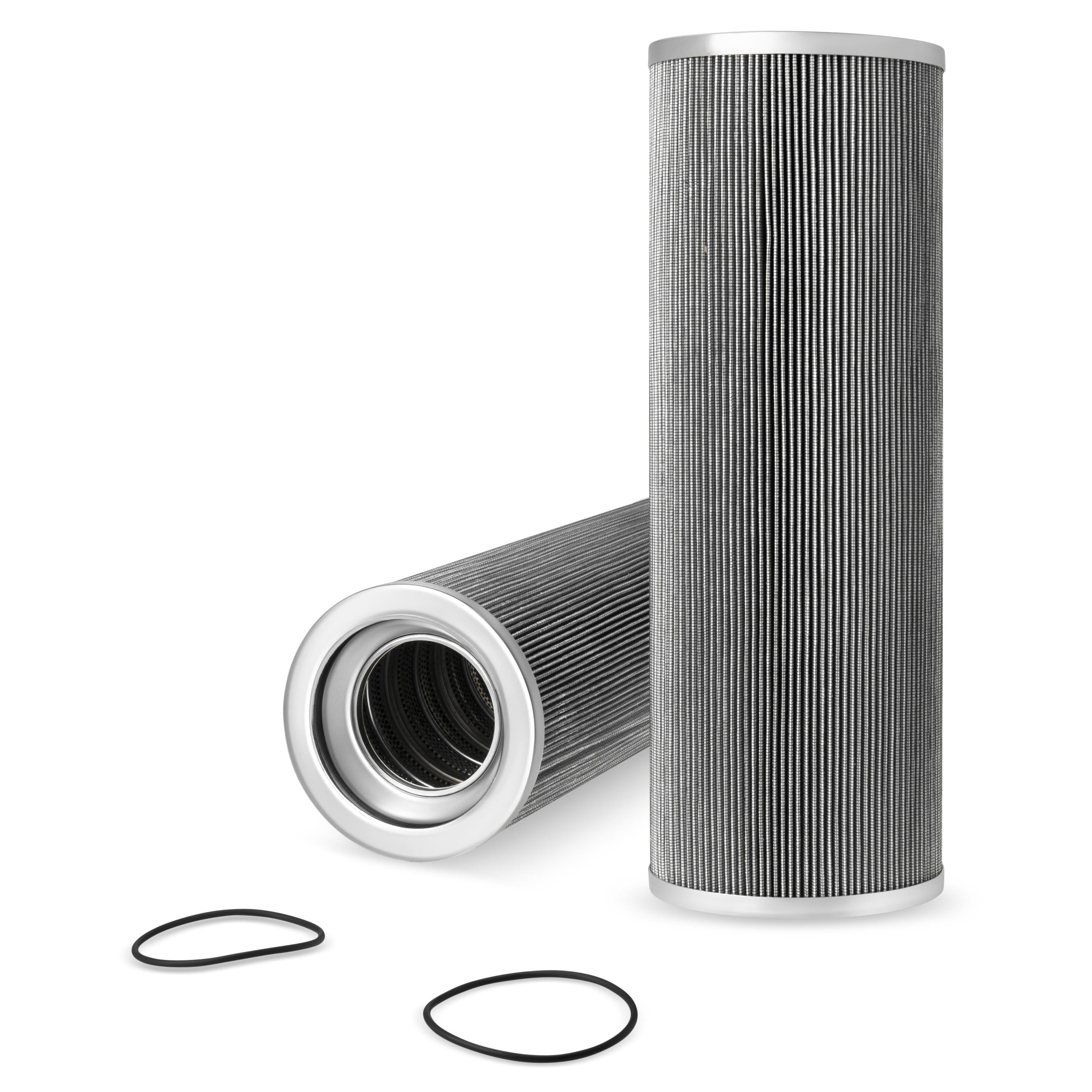The efficiency of the element is shown using the Micron (µ) and Beta (β) ratings. The micron rating indicates the size of the particle being filtered and the beta rating the efficiency, calculated as 1/β.