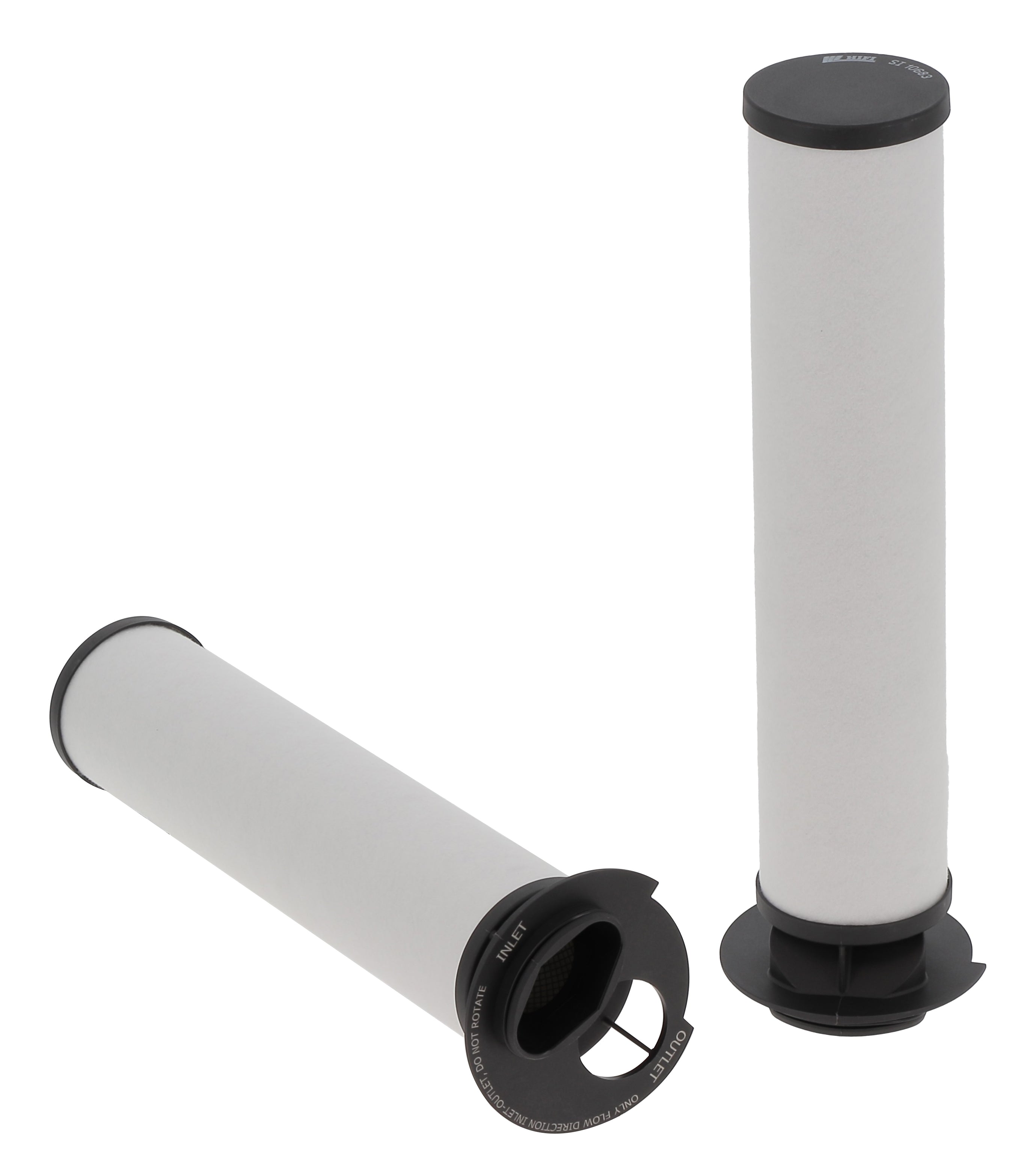 The efficiency of the element is shown using the Micron (µ) and Beta (β) ratings. The micron rating indicates the size of the particle being filtered and the beta rating the efficiency, calculated as 1/β.