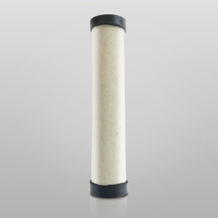The efficiency of the element is shown using the Micron (µ) and Beta (β) ratings. The micron rating indicates the size of the particle being filtered and the beta rating the efficiency, calculated as 1/β.