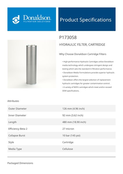 The efficiency of the element is shown using the Micron (µ) and Beta (β) ratings. The micron rating indicates the size of the particle being filtered and the beta rating the efficiency, calculated as 1/β.